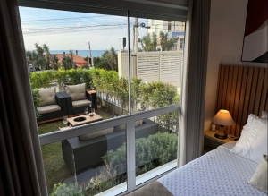 Possui 44 m² de área privativa e 80 m² de área total, com ambientes bem distribuídos. Conta com 1 dormitório, sala e cozinha integradas, área de serviço e uma agradável sacada com churrasqueira e vista permanente para o mar. O grande diferencial é a saída exclusiva para um garden privativo totalmente decorado, um item raro na região e extremamente valorizado por hóspedes e investidores que buscam imóveis diferenciados para locação.